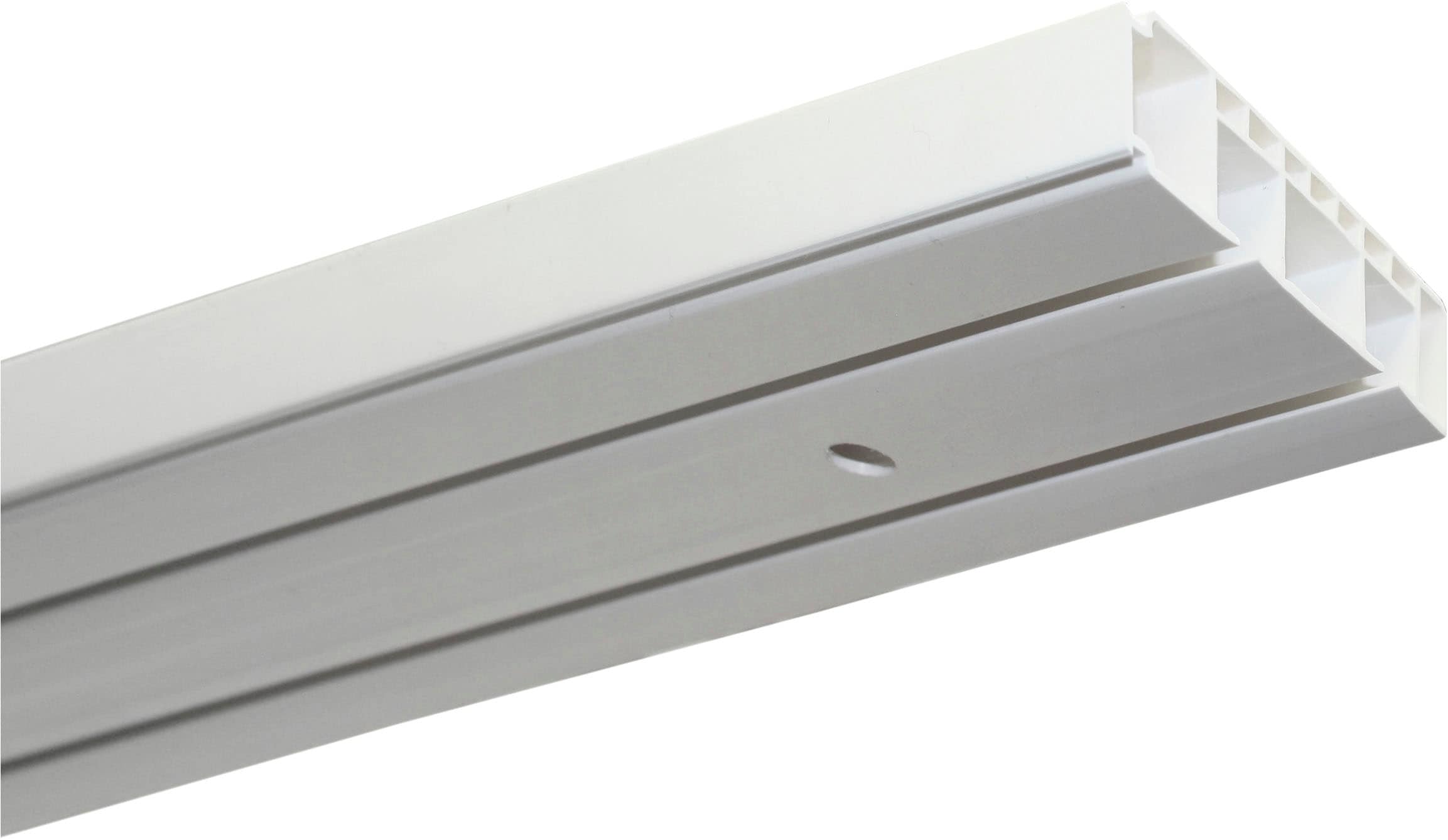 Vorhangschienen - Klassisch. Zeitlos. Die klassische Vorhangschiene ist seit Jahrzehnten ein Dauerbrenner. Auch heute erfreut sie sich noch immer ungebrochener Zustimmung. Die zweiläufige Vorhangschiene ist besonders gut geeignet für großflächige Fensterfronten und repräsentiert einen klassisch-zeitlosen Wohnstil. Die Vorhangschiene ist äußerst praktisch und überzeugt mit einer zurückhaltenden Eleganz. Die Vorhangschiene ist aus weißem Kunststoff. Das Komplett-Set ist inklusive Rollringe, Endkappen, Feststeller, Abdeckkappen für Bohrlöcher und Befestigungsmaterial für die Deckenmontage. Dieses Set enthält: Vorgangschiene (1x120cm / 2x120cm / 3x120cm), Rollringe (34/68/102 St), Schrauben (3/6/9 St), Dübel (3/6/9 St), 1 Paar Endkappen, Abdeckkappen (3/6/9 St), 4x Feststeller. Optik: weiß. Material Träger: Kunststoff. Material Ringe/ Sonstiges: Kunststoff. Bestandteile: Endstücke. Ringe. Schrauben. Dübel. Schienen. Schienenverbinder. inklusive Montageanleitung. Montage: inkl. Rollringe, Endkappen, Feststeller, Abdeckkappen für Bohrlöcher und Befestigungsmaterial für die Deckenmontage. Wissenwertes: Bitte unbedingt Schrauben/Dübel entsprechend der Wandbeschaffenheit verwenden! Qualitätshinweise: Made in Germany. Pflegehinweis: Zur Pflege können Sie die Ware vorsichtig mit einem Staubwedel abstauben oder mit einem trockenem Tuch vorsichtig abwischen. Verwenden Sie keine Reinigungsmittel.