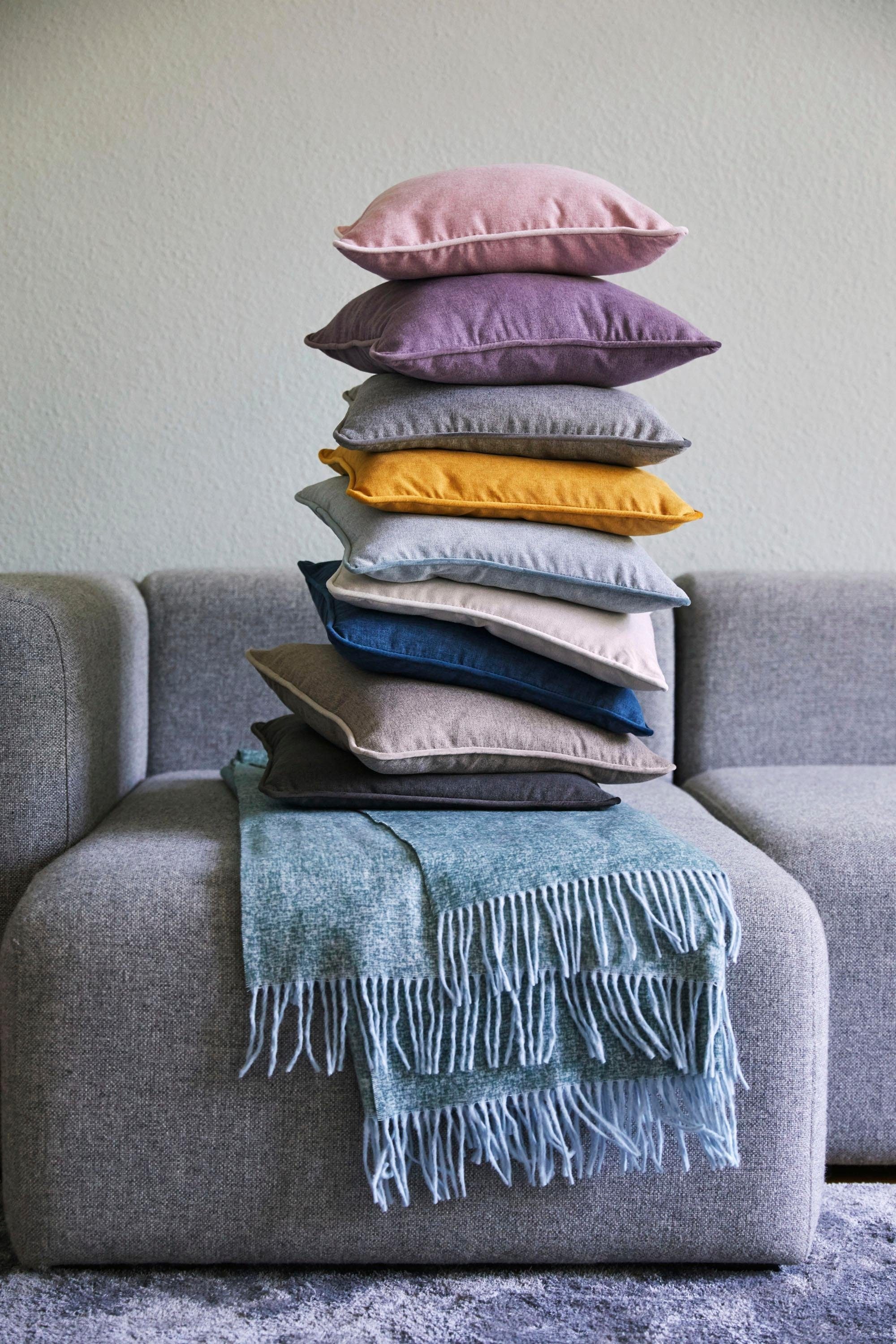 Gewebte Kissenhülle mit Paspel aus Microvelour, einfarbige Flanelloptik.