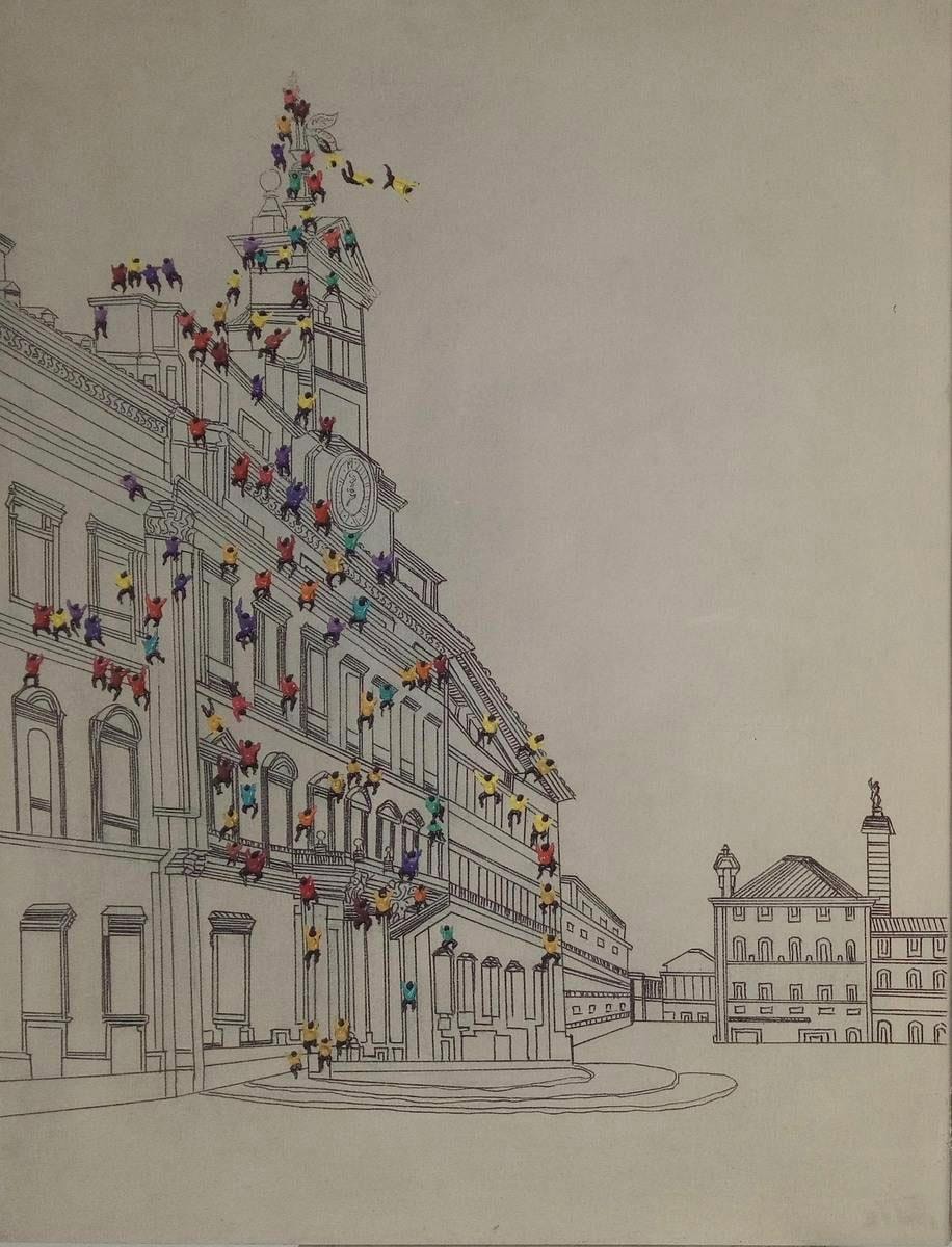Dieses von Hand gefertigte Ölbild »Menschenmenge I« ist ein Highlight für die heimischen vier Wände. Das Motiv besteht aus Personen, die an einer filigran gezeichneten Gebäudefassade hinaufklettern. Besonders ist hierbei, dass die einzelnen Figuren aus großen Farbklecksen bestehen, die dank einer kunstvollen Gestaltung toll zur Geltung kommen. Da alles in Handarbeit entsteht, handelt es sich bei jedem Bild um ein Unikat. Toll in Szene setzen lässt sich die Wanddeko zum Beispiel im Wohnzimmer oder im Schlafbereich. Äußerst originell und schön gearbeitet: das von Hand gefertigte Ölbild »Menschenmenge I«.