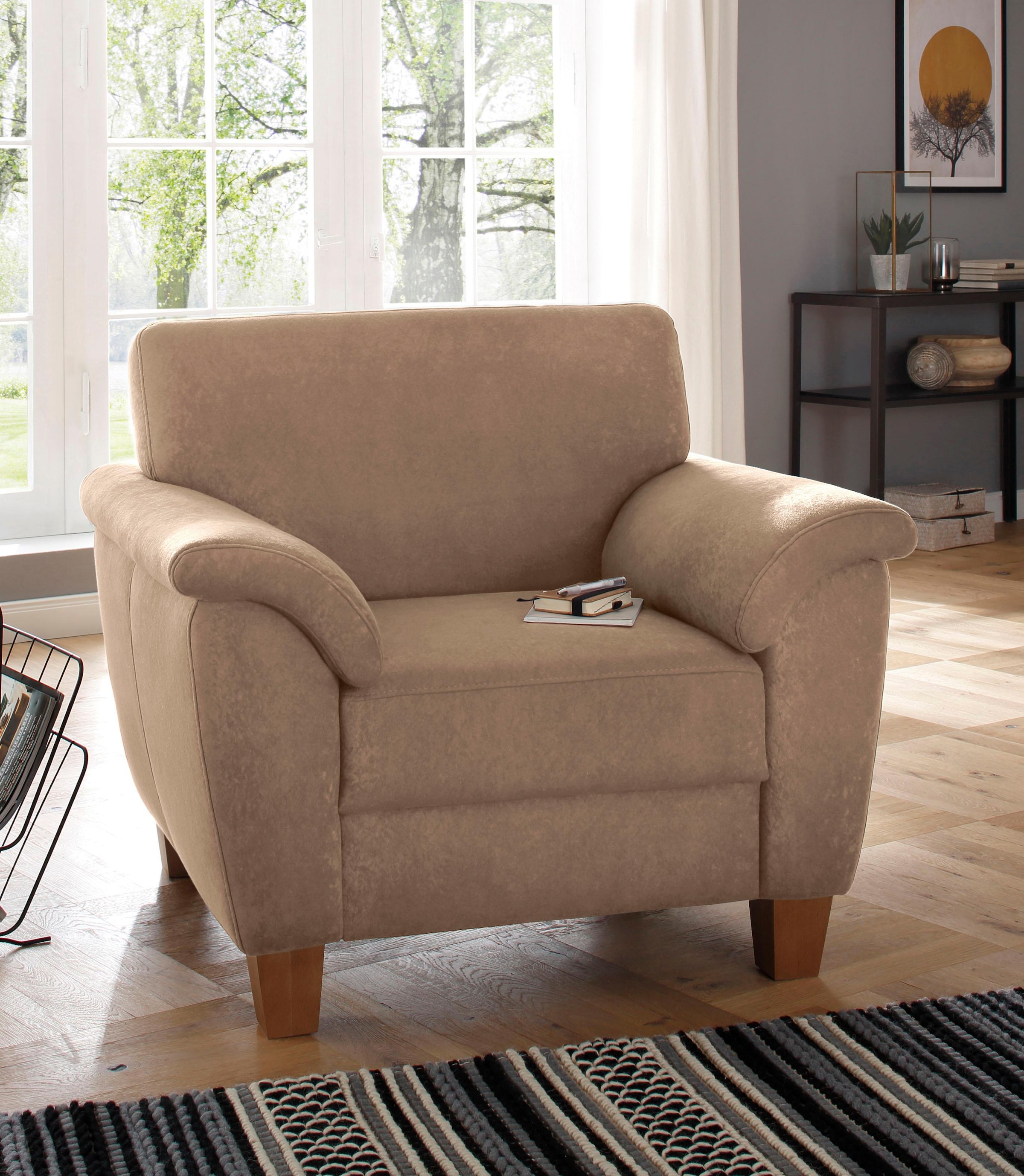 Home affaire Sessel »Alta« mit Federkern und Kontrastnaht, Füße Buche eichefarben