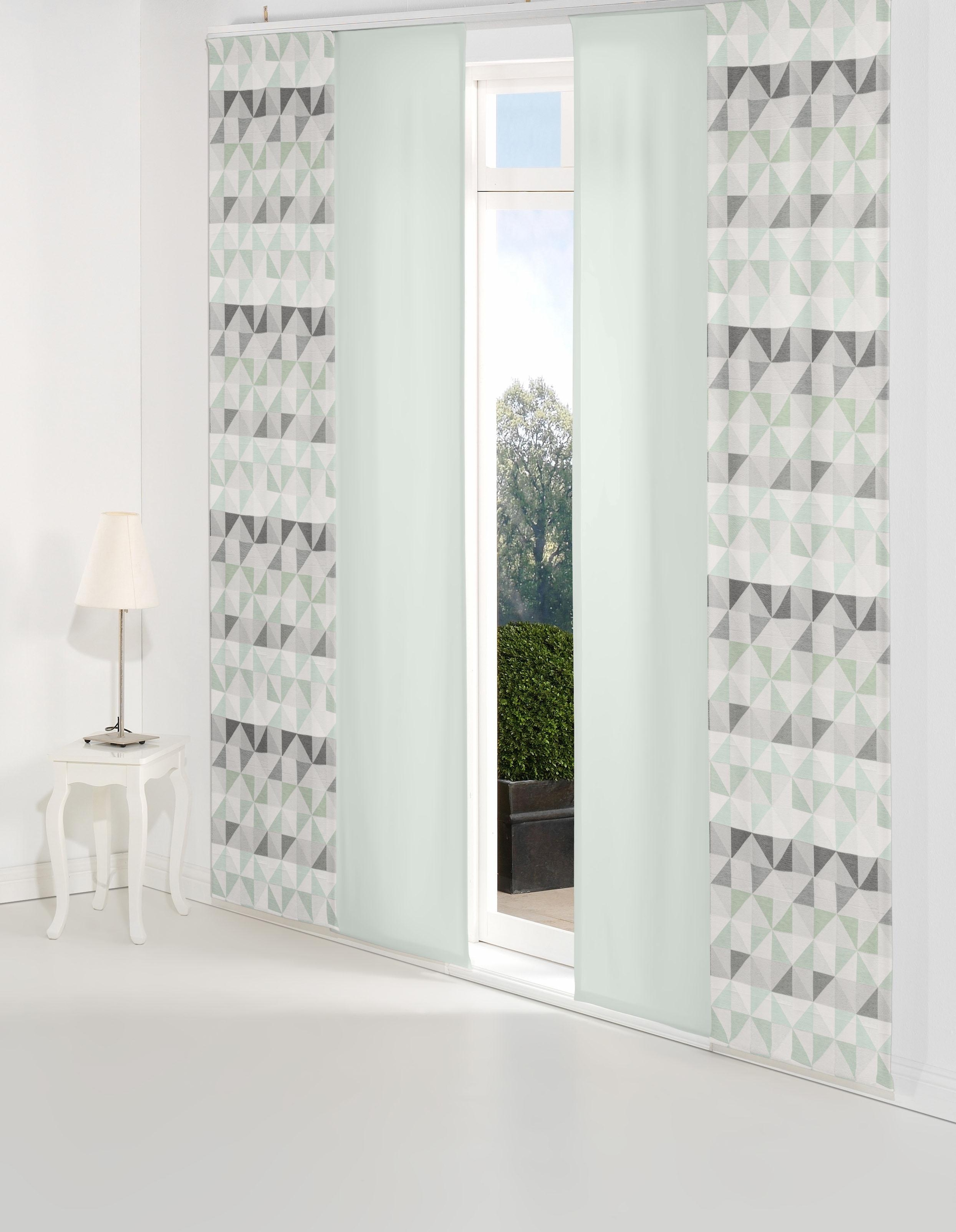 Hinweis Dekoration | Die angegebenen Maße sind die fertig dekorierten Maße.;Eine Schiebegardine ist eine schmale, glatt hängende Stoffbahn, die sich sowohl als Sichtschutz als auch zur Raumteilung eignet. Durch die Schiebetechnik sind Schiebegardinen sehr flexibel einsetzbar. |