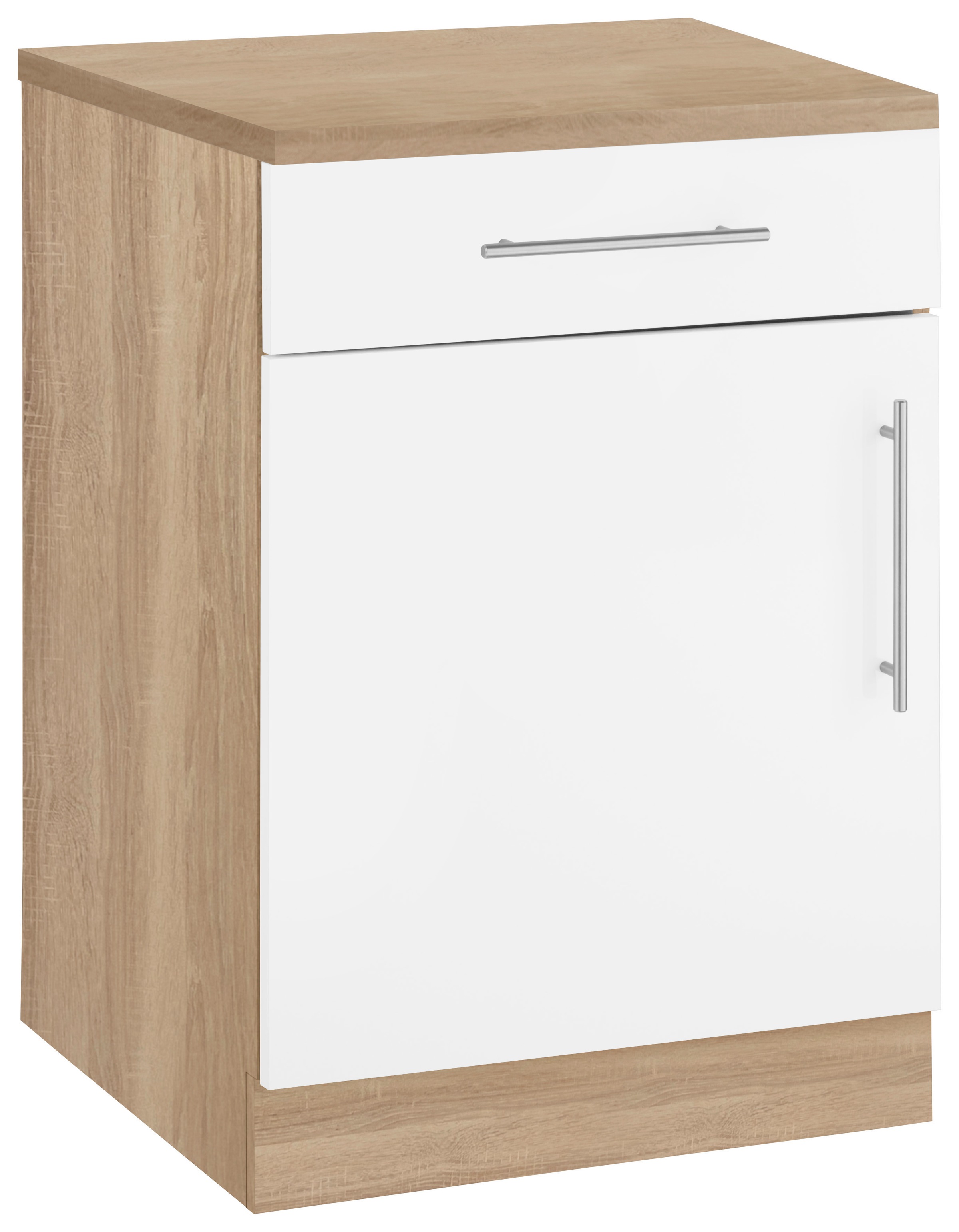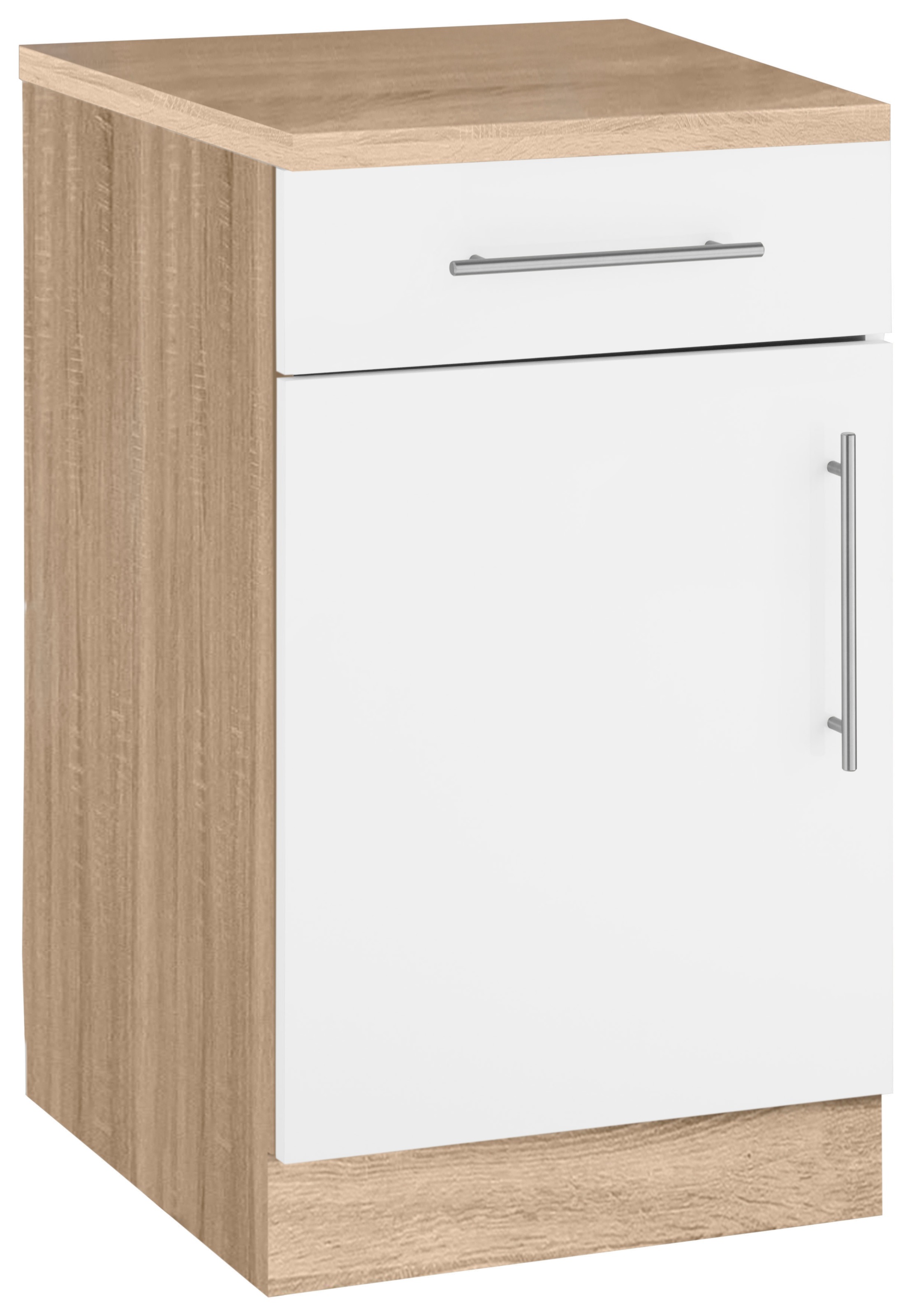Farbbezeichnung | Front: Weiß matt, Korpus und Arbeitsplatte: Sonoma eichefarben |