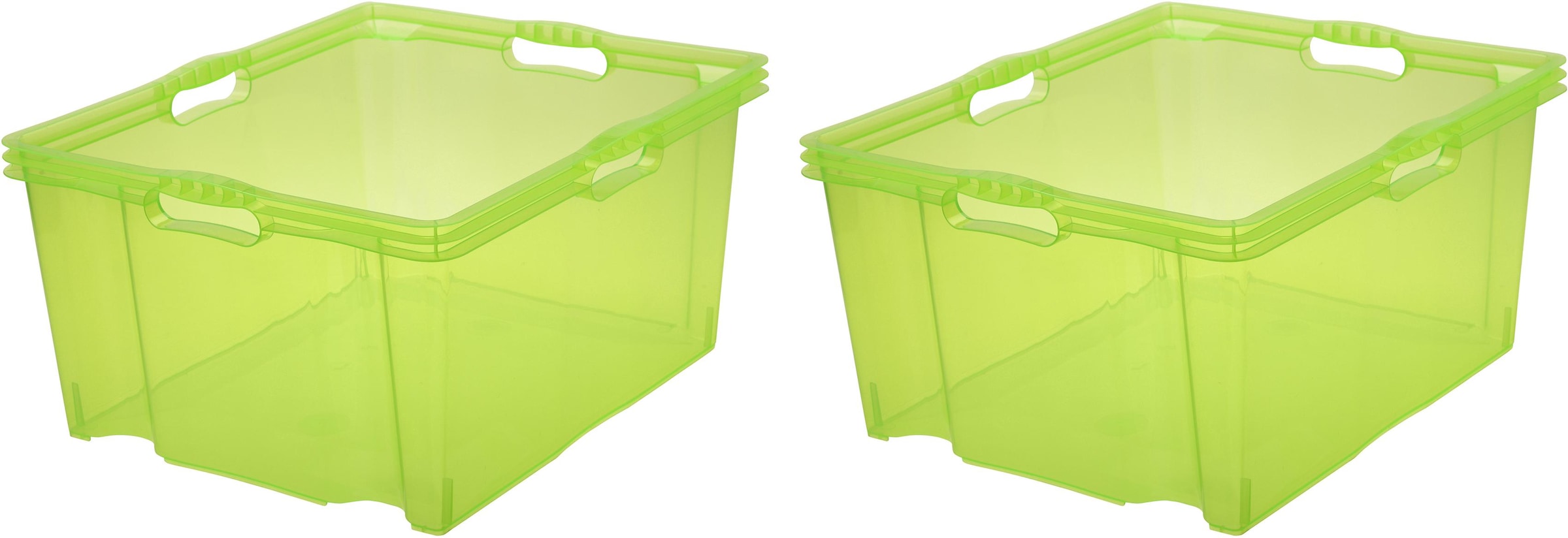 Die robuste Multi-Box »franz« mit 4 integrierten Griffen von keeeper ist extra stoßfest und sorgt überall für Ordnung. Sie ist ideal zum Aufbewahren und Transportieren der unterschiedlichsten Gegenstände geeignet. Der 3-fach verstärkte Bodenrand sorgt für eine hohe Stabilität und dank der transparenten Seitenwände lassen sich die verstauten Sachen auch leicht wiederfinden. Wahlweise sind die Kisten aufeinander stapelbar oder durch einfaches Drehen um 180° platzsparend ineinander nestbar. Die praktischen Boxen bieten eine nützliche Unterbringungsmöglichkeit für regelmäßig oder sporadisch genutzte Dinge sowie für alle Sachen, die sonst noch keinen richtigen Platz gefunden haben. Produktdetails:Ideal zum Aufbewahren von Hobbyartikeln, Spielzeug und anderen Kleinteilen. Dank Dreh-/Stapelsystem aufeinander stapelbar. Platzsparend ineinander nestbar. Einfache Reinigung. Aus hochwertigem Kunststoff. Material: Polypropylen (PP/TPE). Made in Europa. Das 2-teilige Set besteht aus: 2 Aufbewahrungsboxen, Maße (LxBxH): je 52 x 43 x 26 cm, Fassungsvermögen: je 44 l.