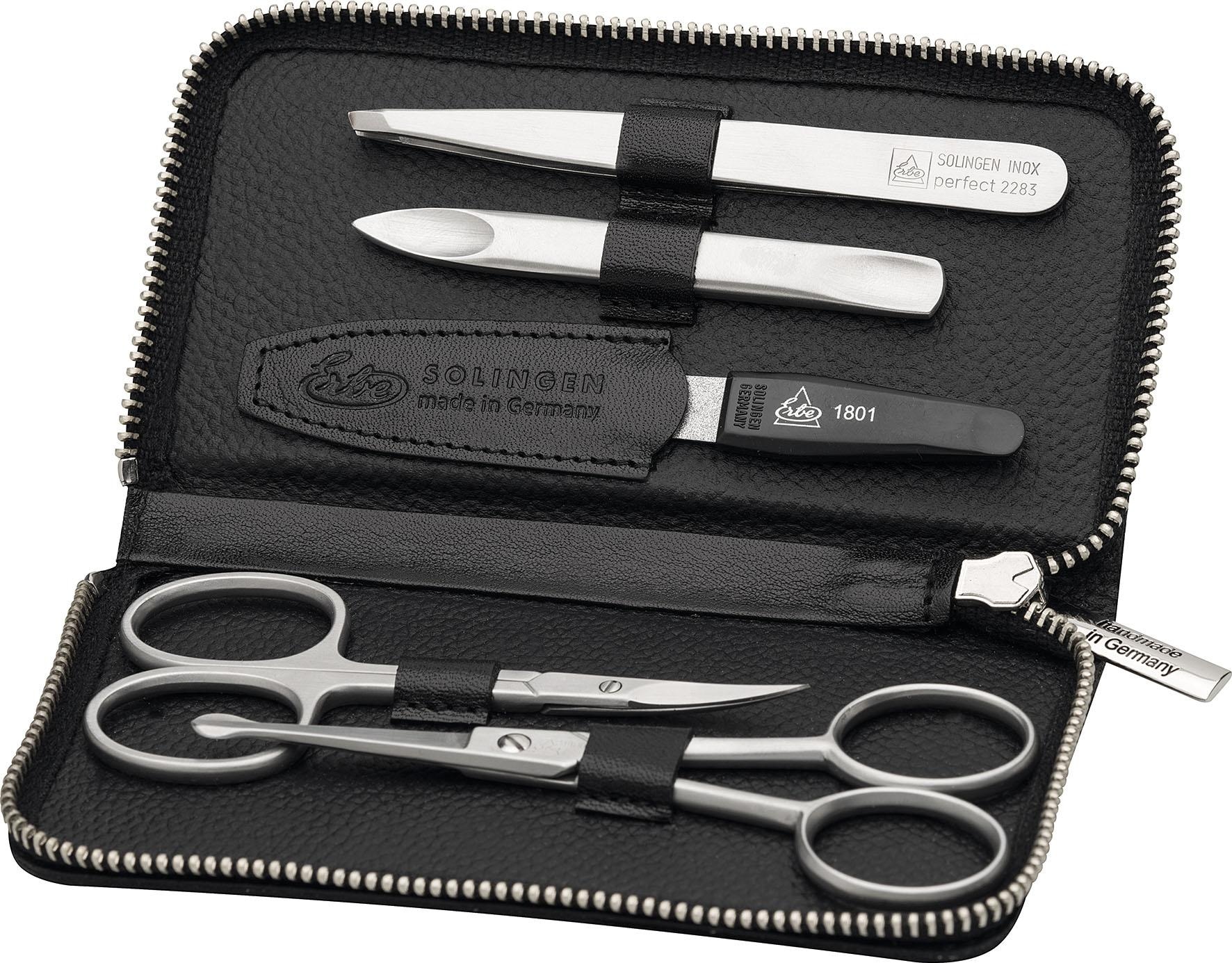 ERBE Maniküre-Etui »Maniküre/Bartpflege-Reißverschluss-Etui aus echtem Leder« bestückt mit Solinger Premium Stahlwaren