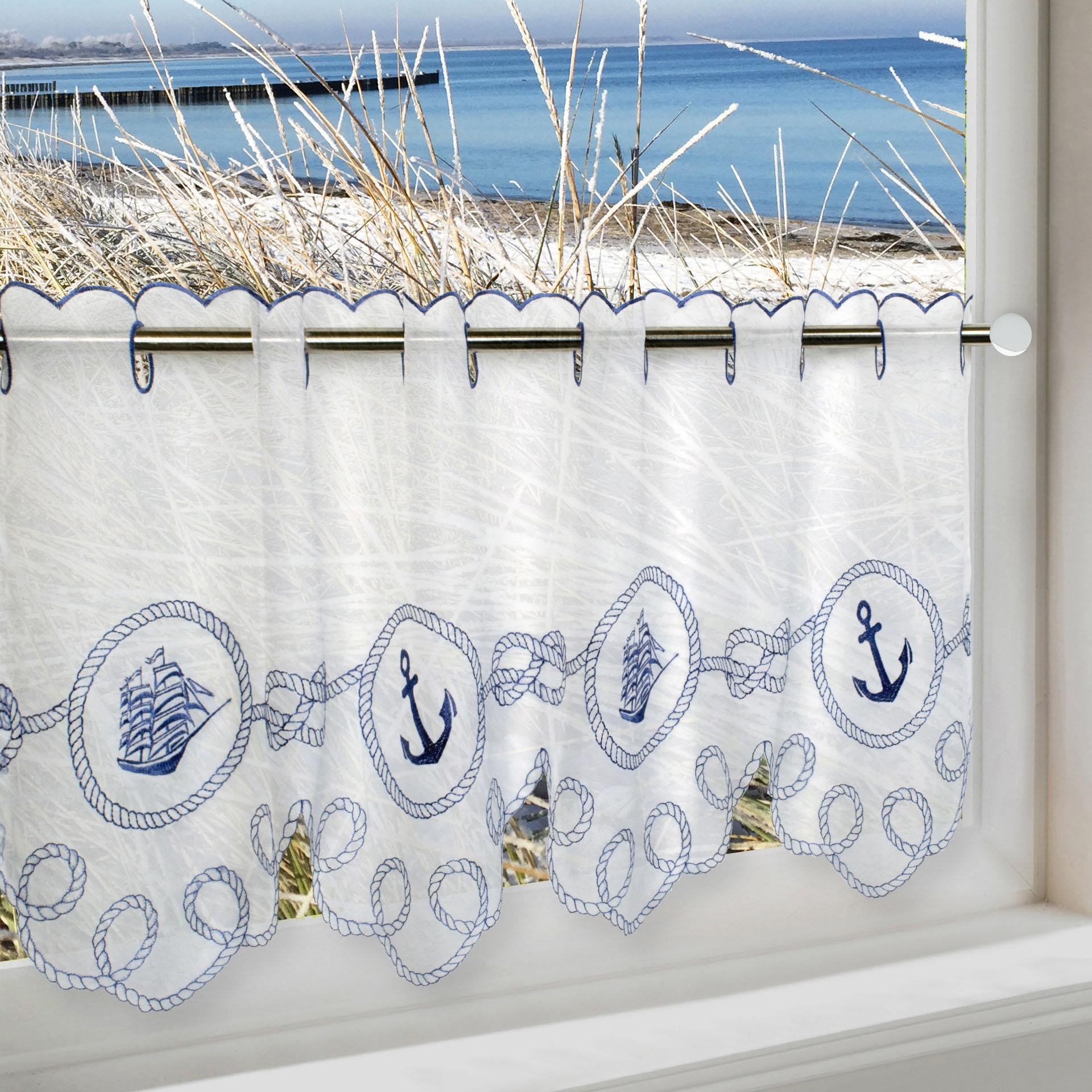 Delindo Lifestyle Scheibengardine »ANKER SEGELSCHIFF« Stangendurchzug 1 Stk. tlg. HxB: 45x115, mit Stangendurchzug, für die Küche