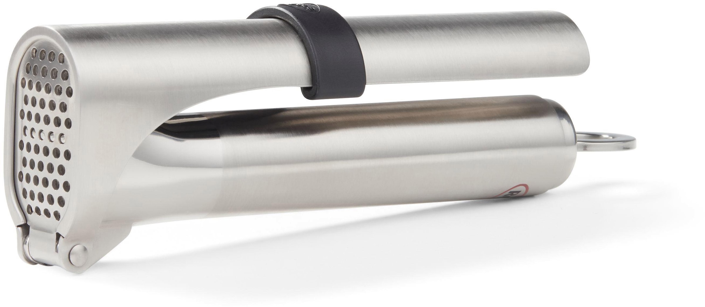 RÖSLE Knoblauchpresse aus Edelstahl 18/10 mit klappbarem Sieb. Mit der Knoblauchpresse lassen sich auch ungeschälte Knoblauchzehen einfach pressen. Schlankes und modernes Design. Leichte Reinigung unter fließendem Wasser durch ausklappbares Sieb. Spülmaschinengeeignet. L/B/H: 18/5,7/3,1 cm.
