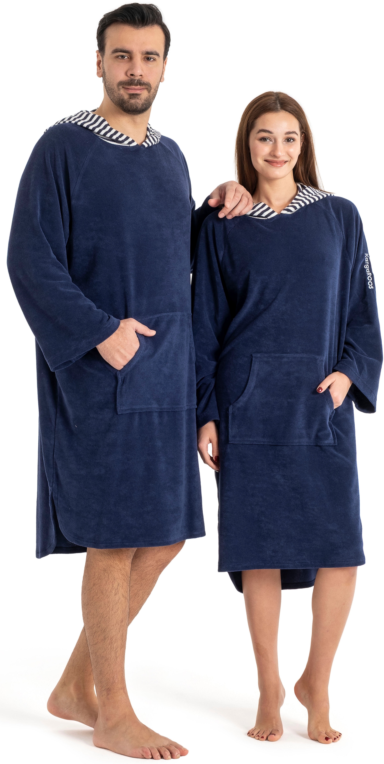- Praktische Details: Kapuze mit Streifenmuster und zwei Taschen - als Standardlänge (120–125 cm) oder Überlänge (135–140 cm) – ideal für jede Körpergröße
