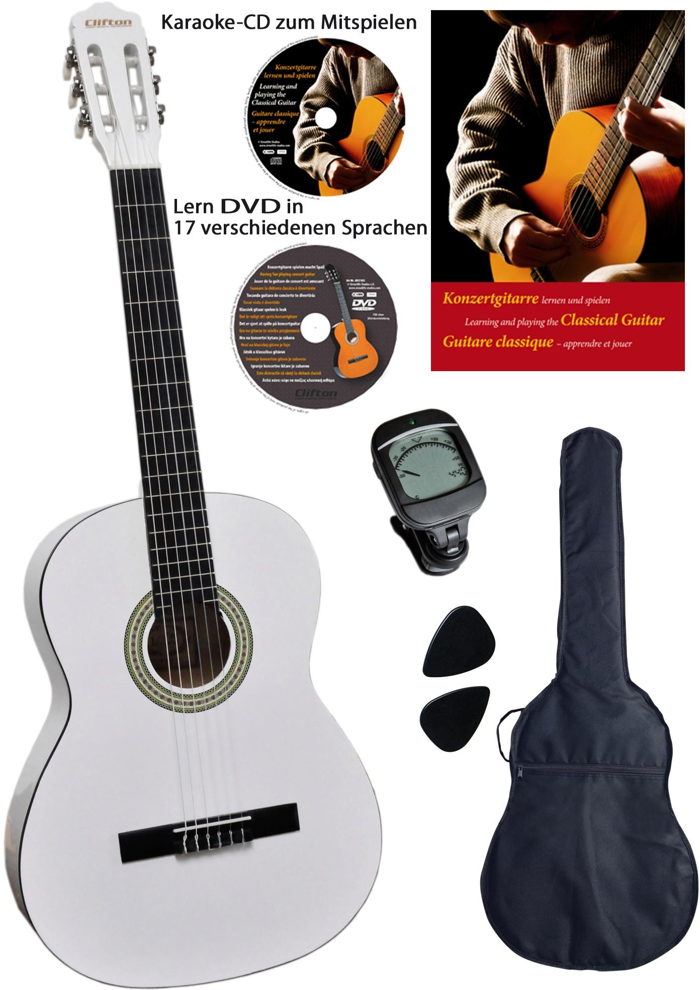 Clifton Konzertgitarre »Konzertgitarrenset White 4/4« Komplettset