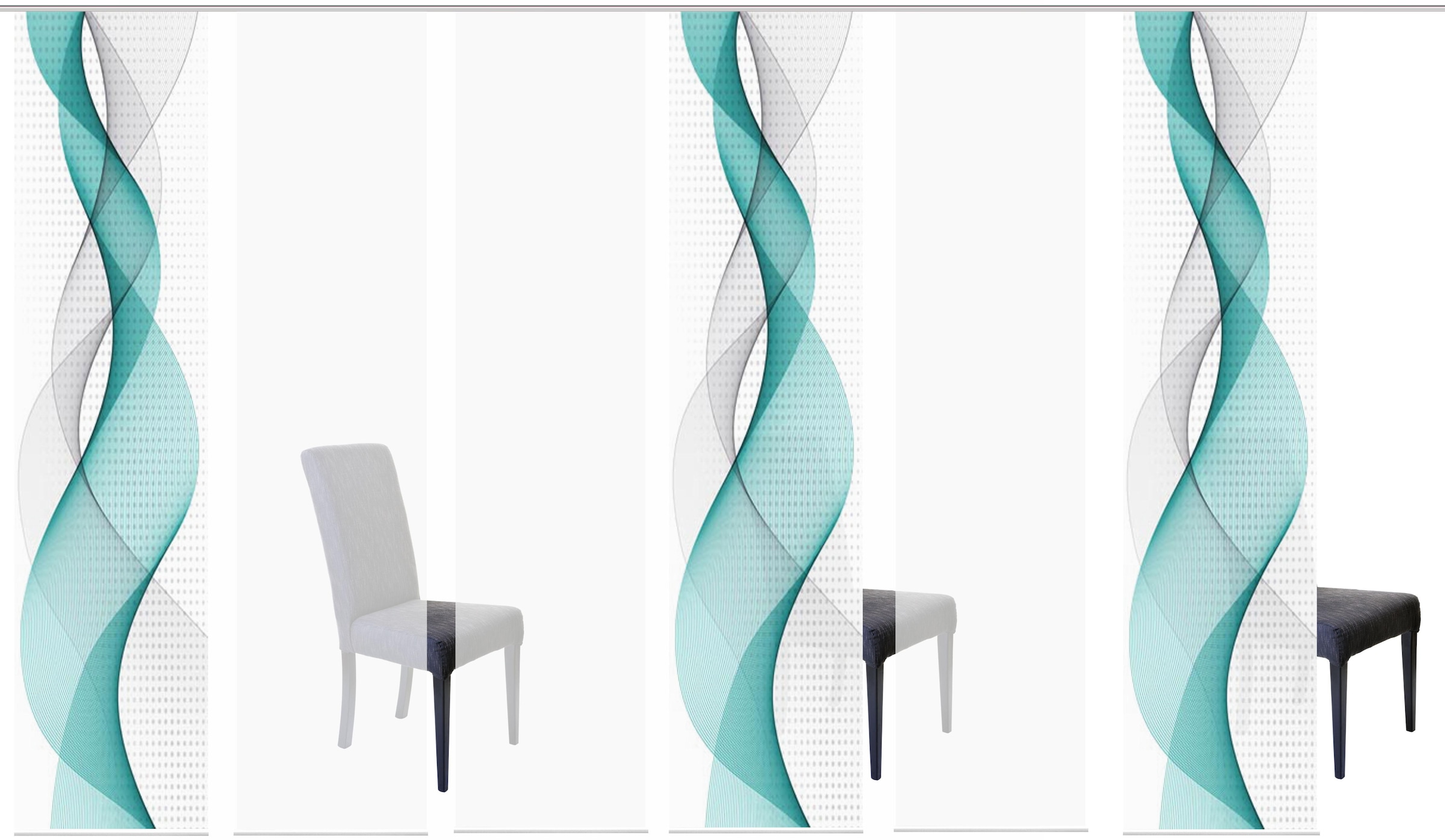Hinweis Dekoration | Eine Schiebegardine ist eine schmale, glatt hängende Stoffbahn, die sich sowohl als Sichtschutz als auch zur Raumteilung eignet. Durch die Schiebetechnik sind Schiebegardinen sehr flexibel einsetzbar. |