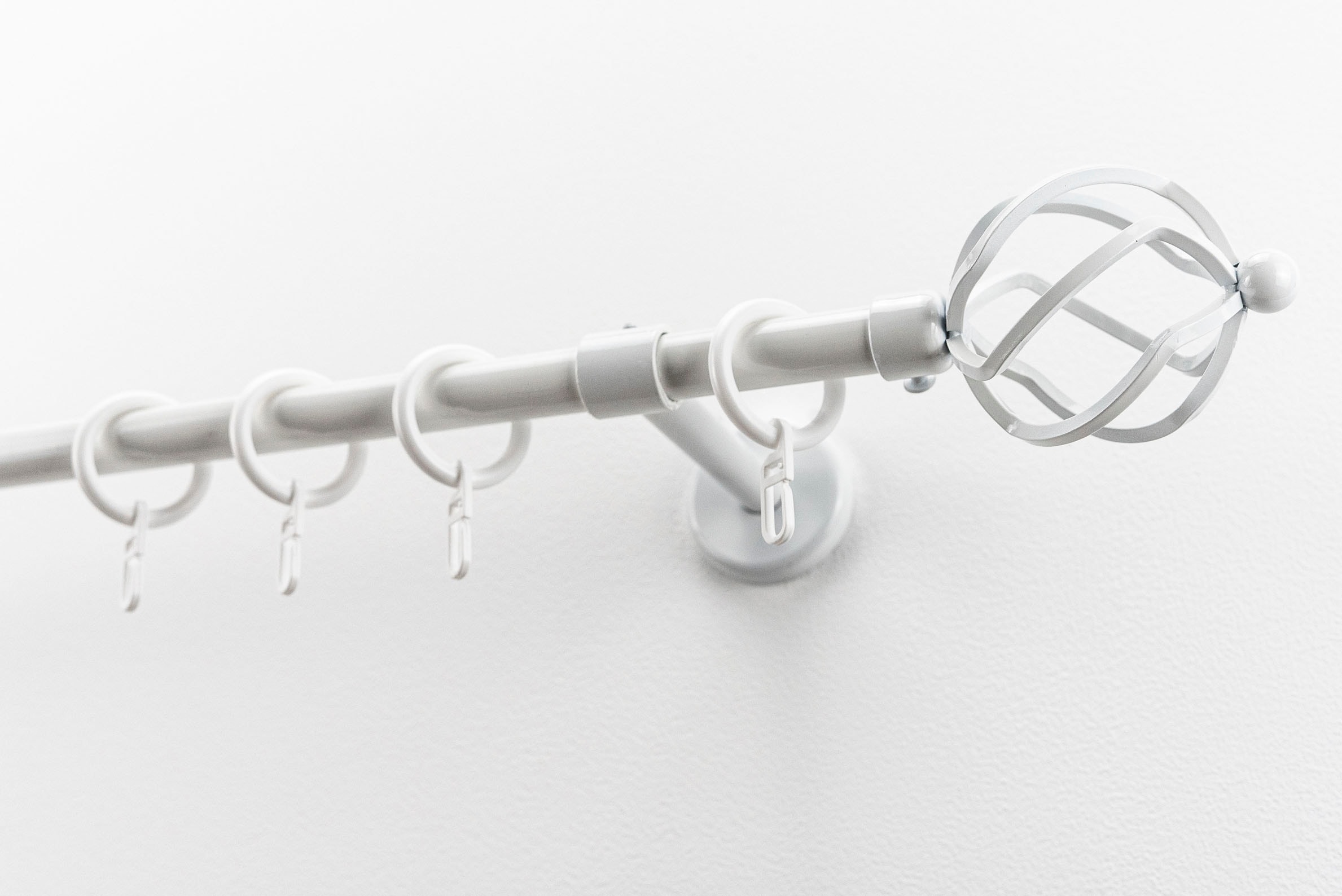Metall, ausziehbar, komplett mit Metall-Trägern, Kunststoff-Endstücken, -Ringen, mit Faltenlegehaken und Befestigungsmaterial, Trägerlänge (Wandabstand der Gardinenstange) 8,5 cm Anzahl Gardinenringe mit Faltenlegehaken = 24 Stück