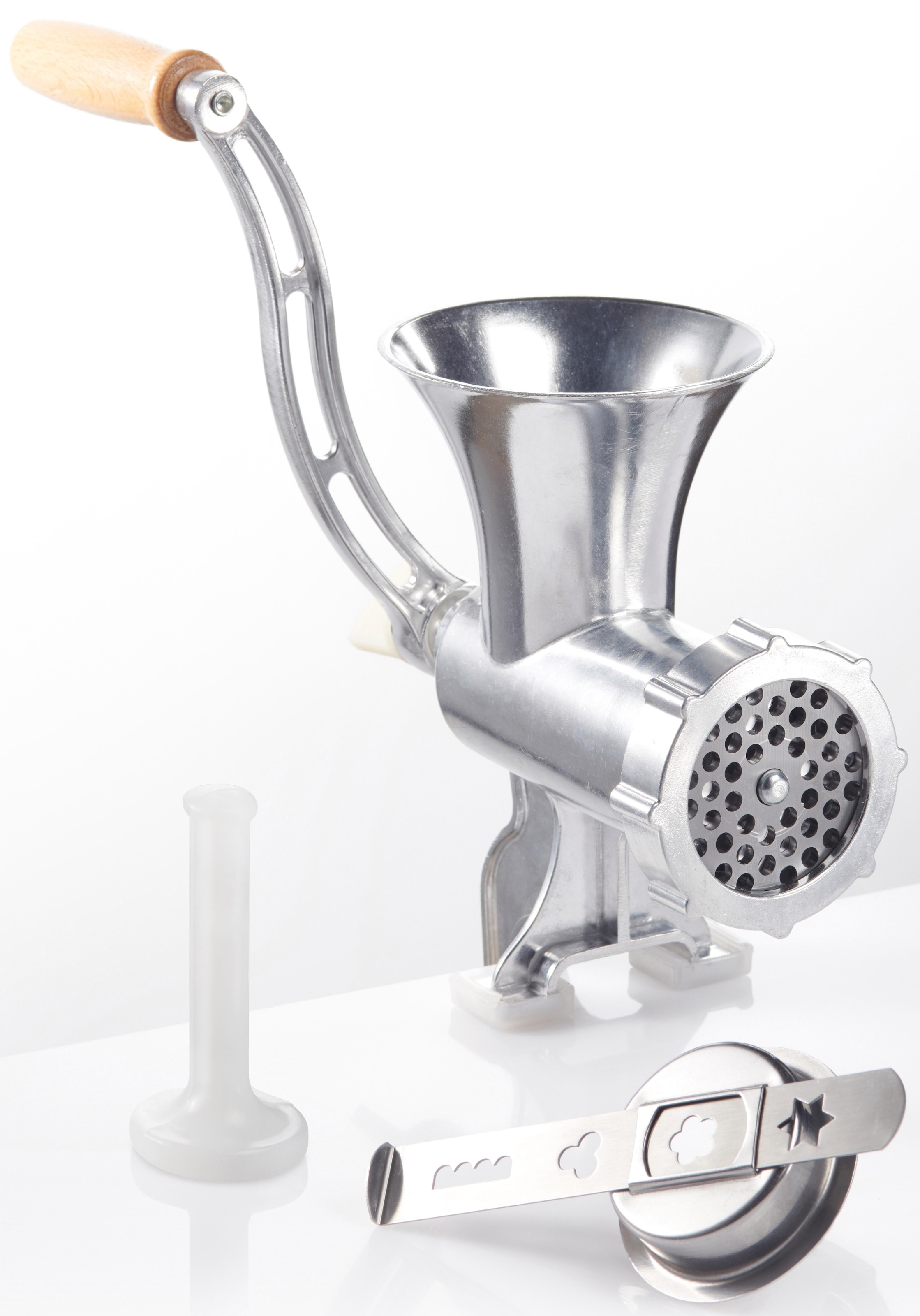 - Mit hochwertigem Edelstahlmesser und -lochscheibe