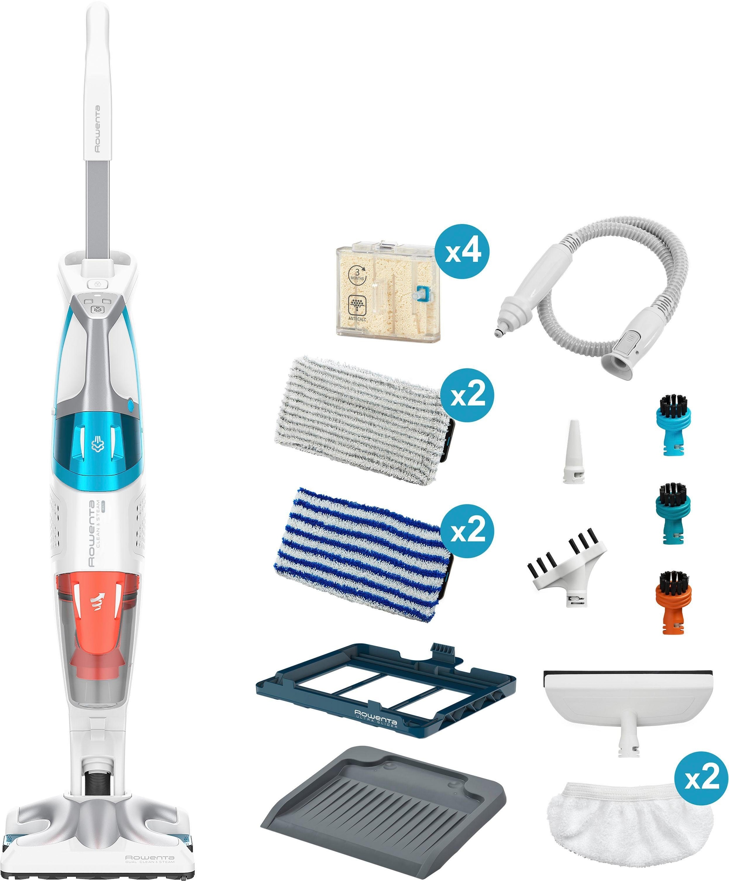 Rowenta Dampfreiniger »+ Staubsauger Clean & Steam Ultimate RY8544« gleichzeitig saugen und wischen, Abnehmbares Handteil, viele Aufsätze