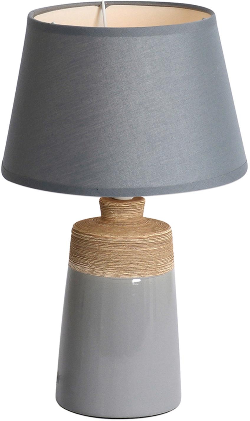 Trendige Tischleuchte mit Keramiksockel und Textilschim - Materialmix - Keramik/Textil. Geeignete Leuchtmittel E14, max. 40 Watt (im Lieferumfang nicht enthalten). Gesamthöhe 31 cm, Fuß: H: 17 cm, Ø 13 cm, Schirm  H: 13 cm, Ø 20/15 cm.