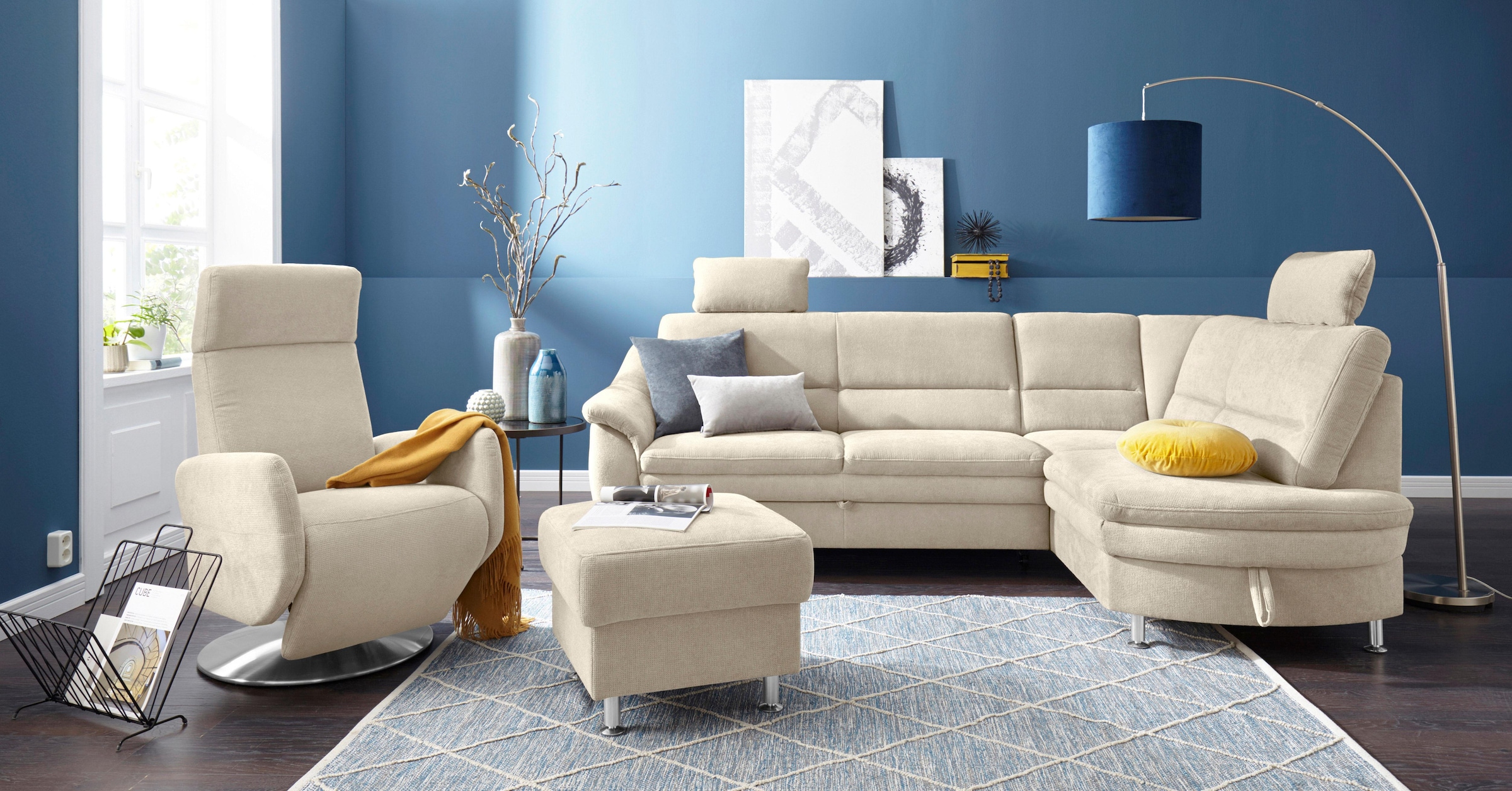 Wissenswertes | Pflegehinweise für Microfaser-Stoffe Zur allgemeinen Pflege reicht es aus, wenn Sie die Oberfläche mit einer weichen Kleiderbürste ab und zu leicht abbürsten oder mit der Polsterdüse absaugen. Flecken sollten Sie grundsätzlich sofort entfernen. Waschen Sie Flecken mit kreisenden Bewegungen und wenig Druck mit einem weißen Baumwolltuch und lauwarmem Wasser großflächig ab. ACHTUNG! Durch zu viel Druck beim Auswaschen können die Farben verblassen! Prüfen Sie vorsorglich an einer versteckt liegenden Stelle, wie sich die Farbgebung des Stoffes verhält. Lassen Sie die feuchten Stellen normal abtrocknen. Verwenden Sie keinen Haartrockner. Ganz hartnäckige Flecken können Sie auch mit einem Polster-/Teppichreiniger auf wasserlöslicher - oder Schaumbasis behandeln. Testen Sie immer zuerst an einer verdeckten Stelle, ob das Reinigungsmittel den Stoff angreift.;Pflegehinweise für Strukturstoffe Dieser Bezug zeichnet sich durch sein dezentes Farbenspiel sowie des angenehmen Griffes aus, der durch einen aufwendigen Herstellungsprozess erzielt wird. Zur allgemeinen Pflege reicht es aus, wenn Sie die Oberfläche mit einer weichen Kleiderbürste ab und zu leicht abbürsten oder mit der Polsterdüse absaugen. Um Ziehfäden zu vermeiden, sollten Sie bitte Haustiere, spitze Gegenstände (wie z.B. Schmuck etc.) von Ihrem neuen Möbel fernhalten |