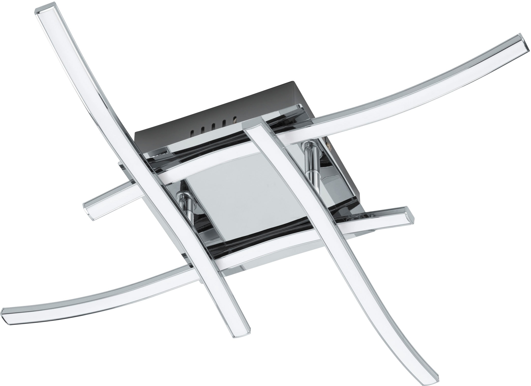 - Die dekorative LED-Deckenlampe aus chromfarbenem Aluminium mit geschwungenen Leuchtenarmen fügt sich perfekt in moderne Räume ein