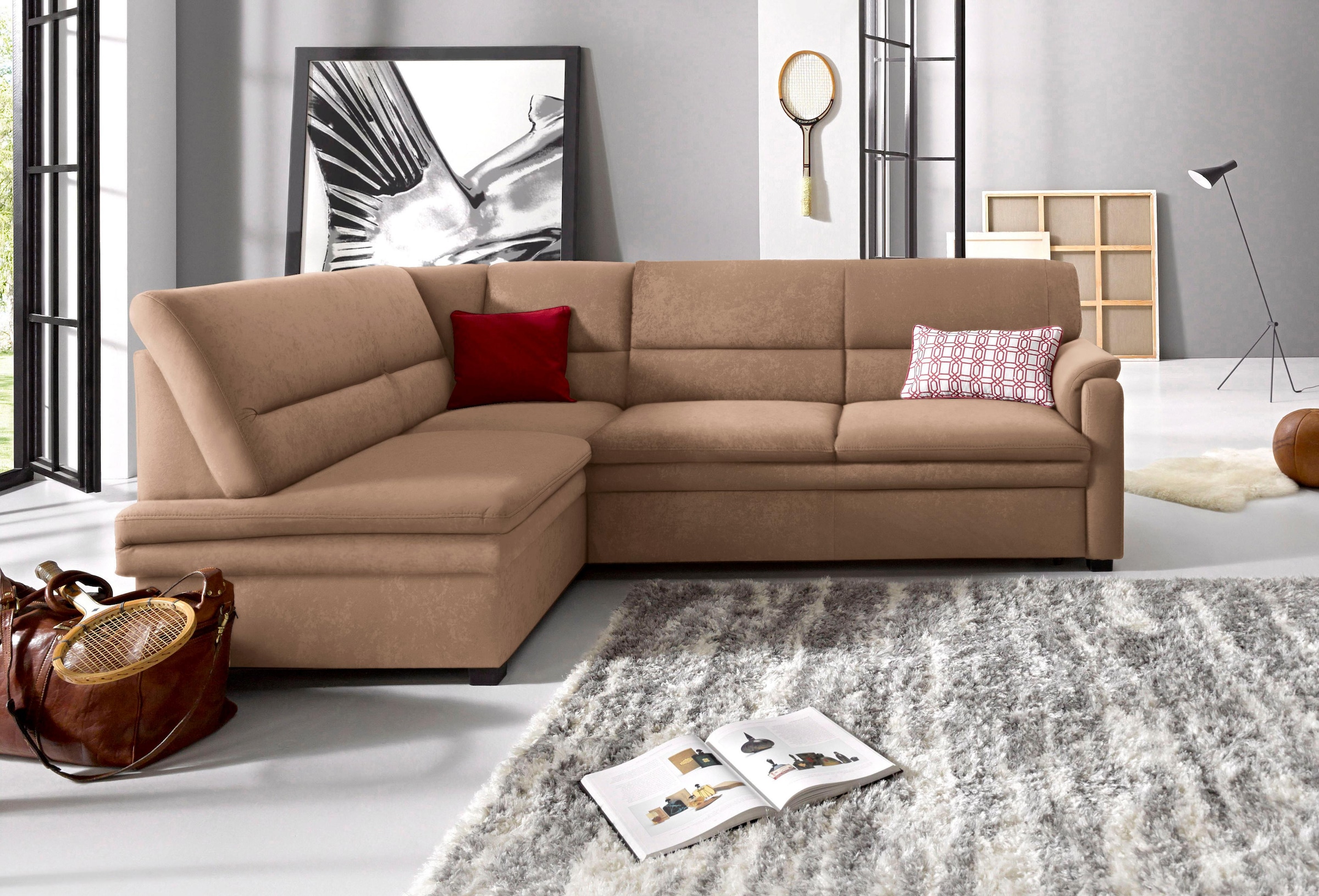 sit&more Ecksofa »Pisa L-Form« mit Federkern, wahlweise mit Bettfunktion