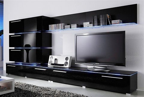 Alles ca.-Maße. Selbstmontage mit Aufbauanleitung. Beleuchtung bitte extra bestellen. Wir empfehlen für die Wohnwand 1x 16er-Set LED-Glaskantenbeleuchtung in weiß (Artikelnummer: 800731) oder in blau (Artikelnummer: 800846) inkl. Trafo und Z |