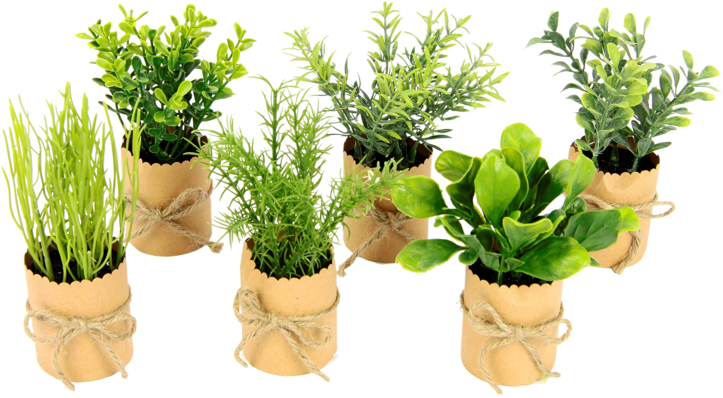 - Kunstpflanze »Kräutersortiment« im Papiertopf, mit Juteband, 6er SetI.GE.A.Ursprünglicher PreisUVP 22,99 €Rabatt- 13 %Aktueller Preis19,99 €