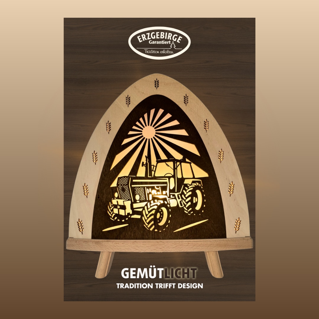 - LED Dekolicht »Traktor, BxHxT: 30x32x6 cm« E14 Dekolampe aus dem Erzgebirge, Holz BucheWeiglaAktueller Preis59,99 €Neu