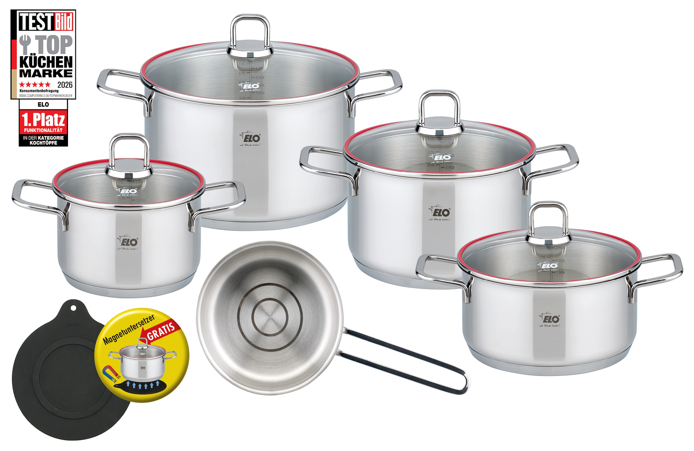 - Topf-Set »Excellent« Set, Bratentopf Ø 20 cm, je 1 Fleischtopf Ø 16/20/24 cm,...EloUrsprünglicher PreisUVP 329,00 €Rabatt- 138,01 €Aktueller Preis190,99 €