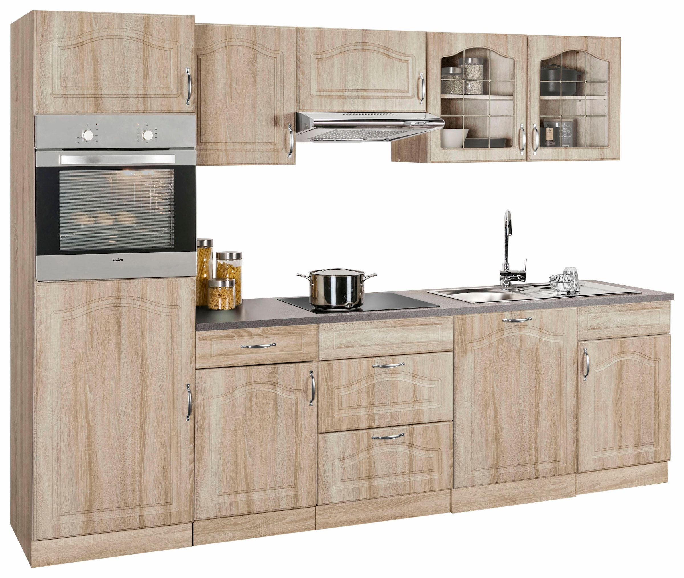 - Küchenzeile »Linz« mit E-Geräten, Breite 280 cmwiho KüchenUrsprünglicher PreisUVP 5.452,00 €Rabatt- 1.326,01 €Aktueller Preis4.125,99 €KühlschrankProduktdatenblattBackofenProduktdatenblattGeschirrspülerProduktdatenblattDunstabzugshaubeProduktdatenblatt