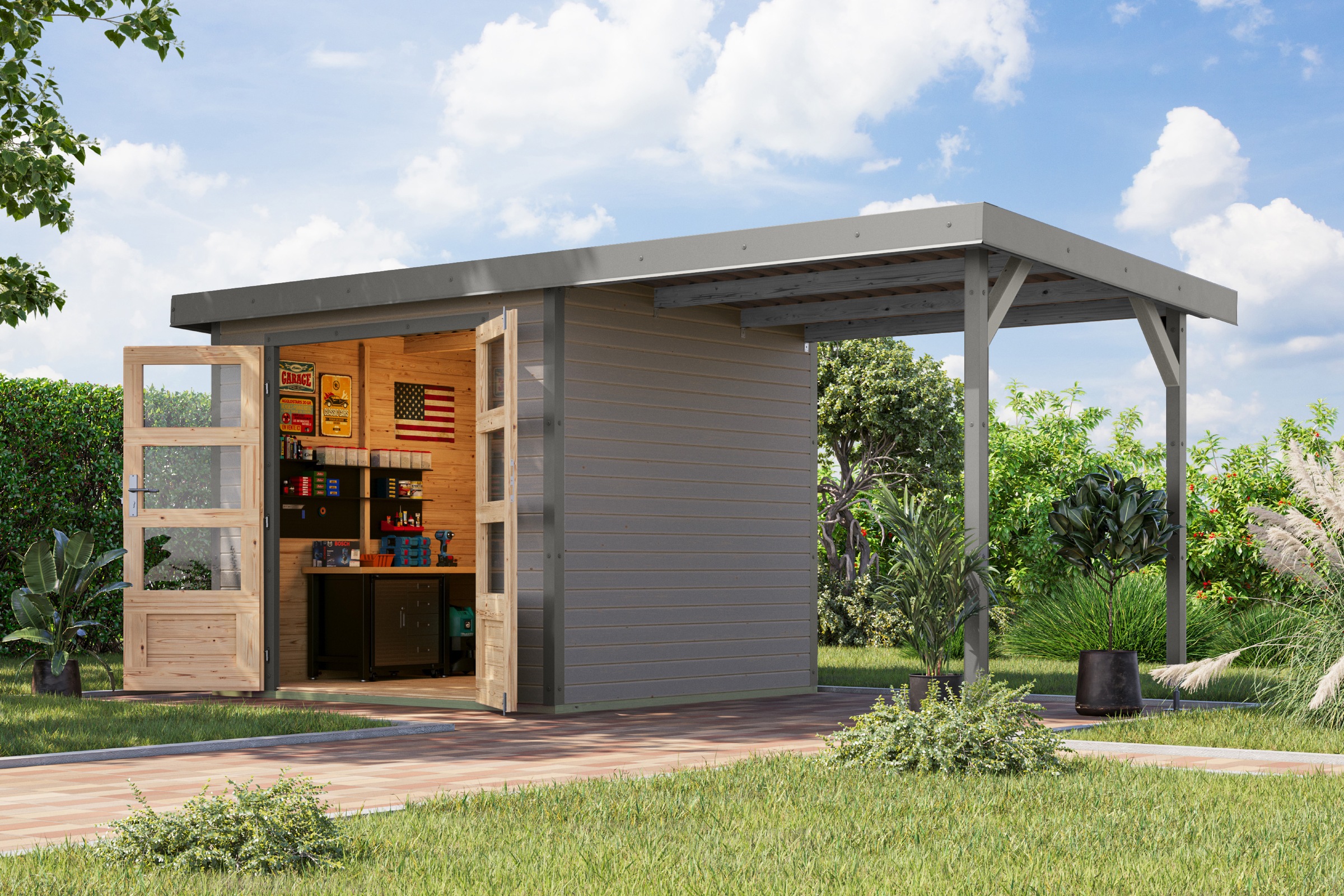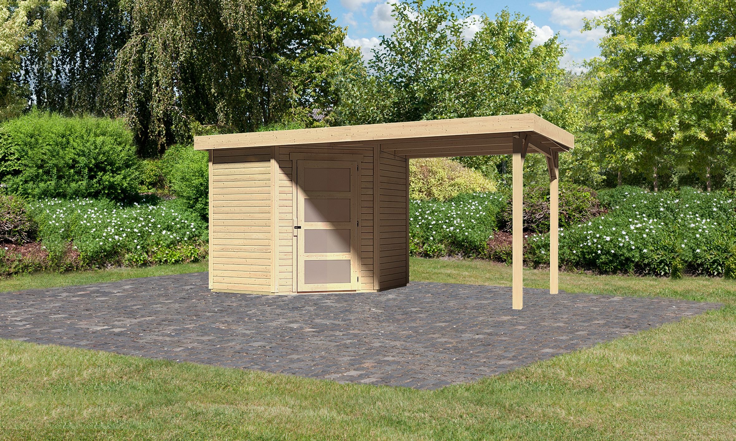 - Gartenhaus »"Ammersee 1" SET mit Anbaudach 2,35 m Breite« naturbelassen oder terragrauKaribuAktueller Preis1.915,99 €
