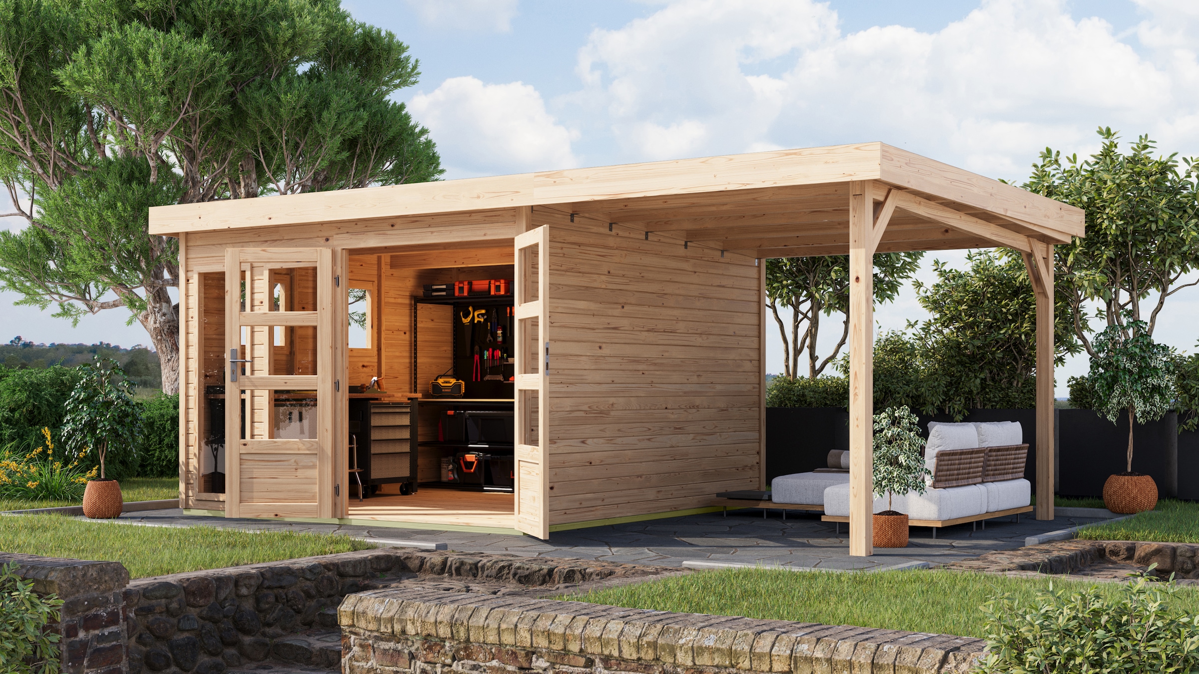 - Gartenhaus »"Remus" Pultdach 2,97x2,97m inkl Anbaudach 3m naturbelassen« Gartenhaus...KaribuAktueller Preis2.253,99 €
