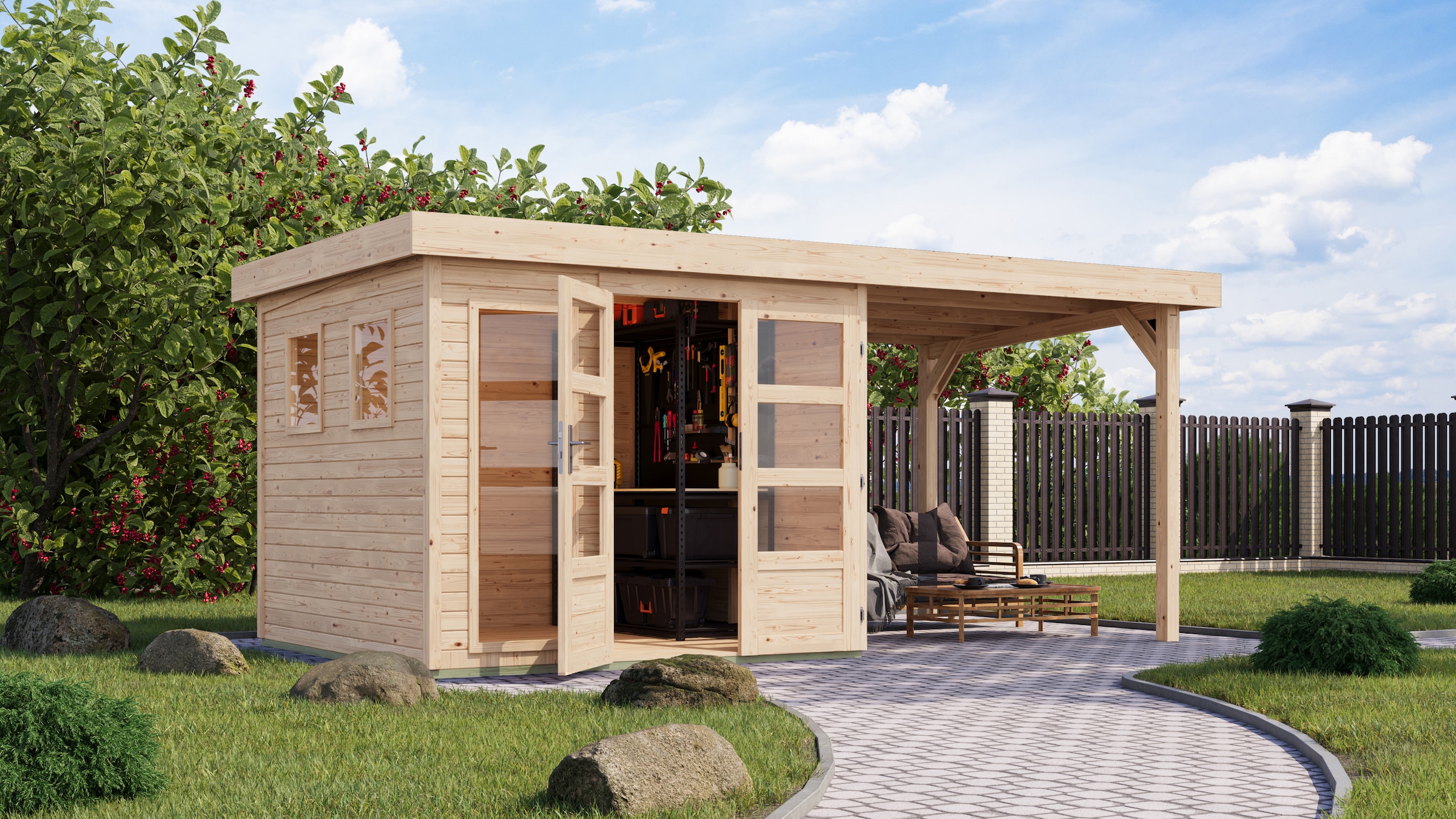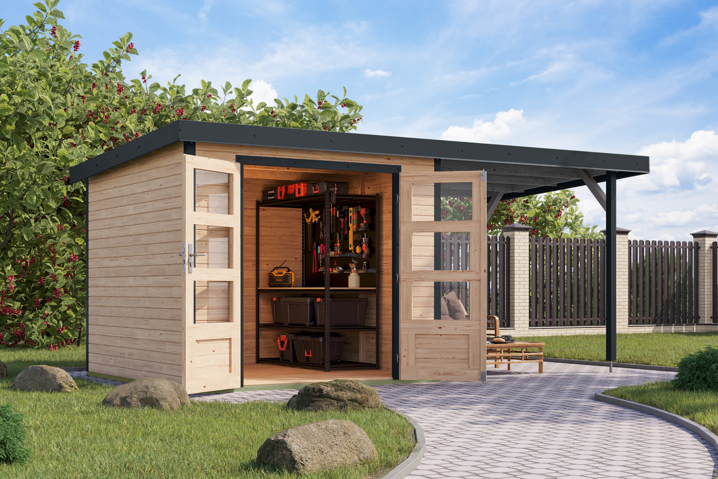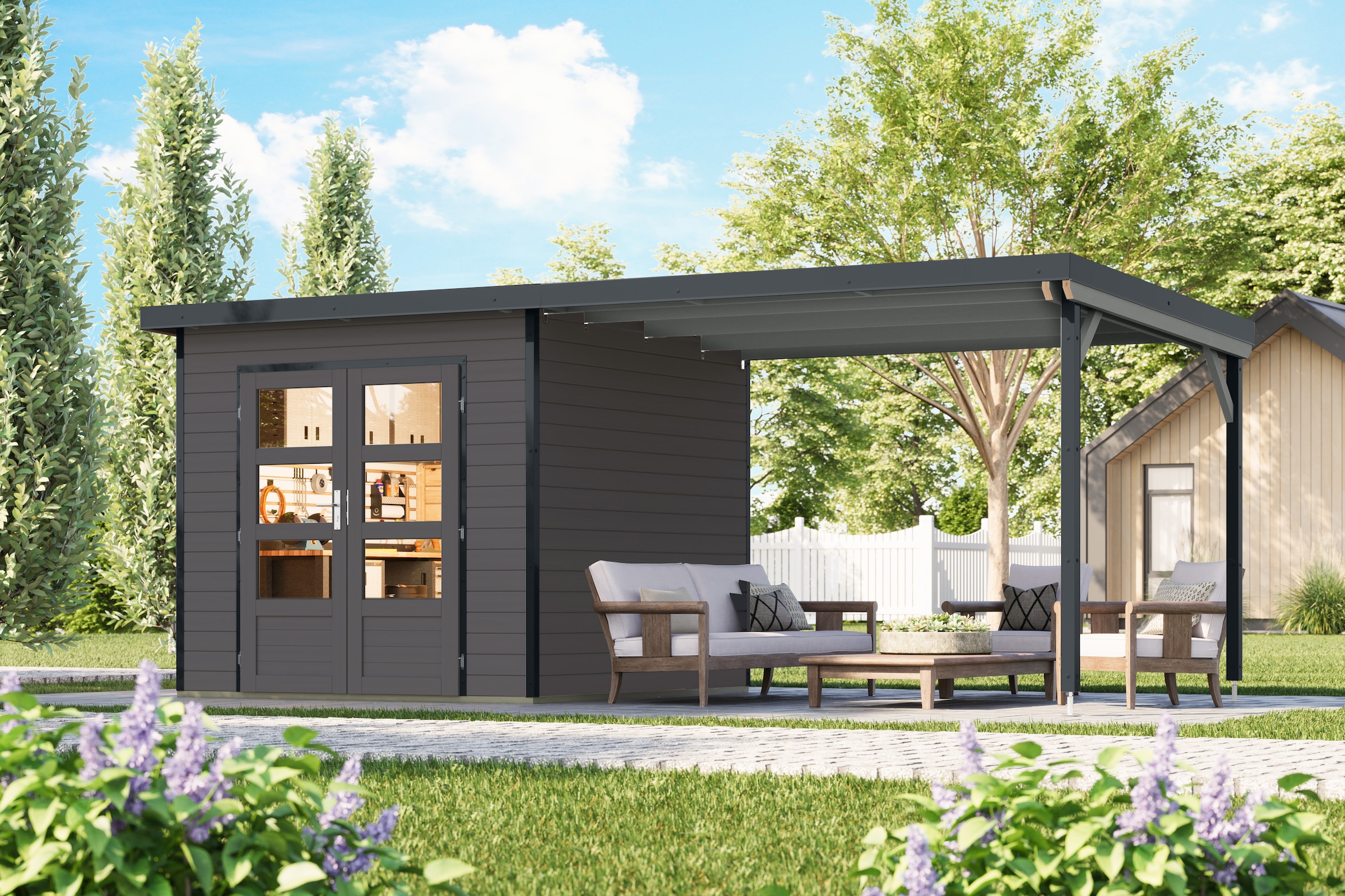 + Farben - Gartenhaus »Plutino 2 SET, in verschiedenen Farben« inkl. AnbaudachKaribuAktueller Preis2.473,99 €