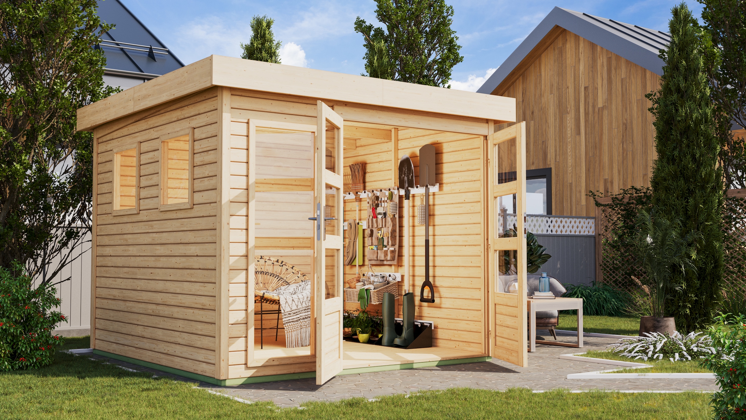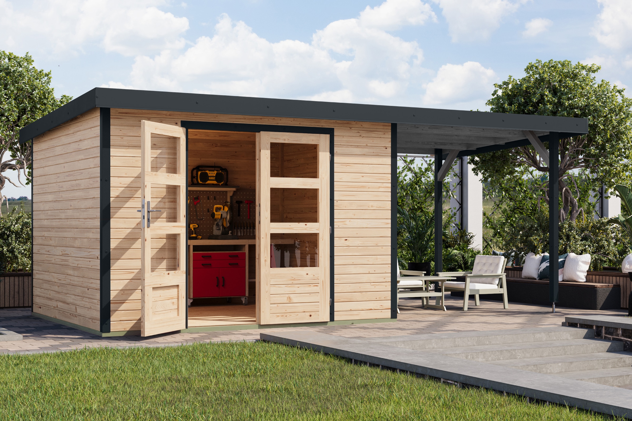 + Farben - Gartenhaus »Plutino 3 SET, in verschiedenen Farben« inkl. AnbaudachKaribuAktueller Preis2.962,99 €