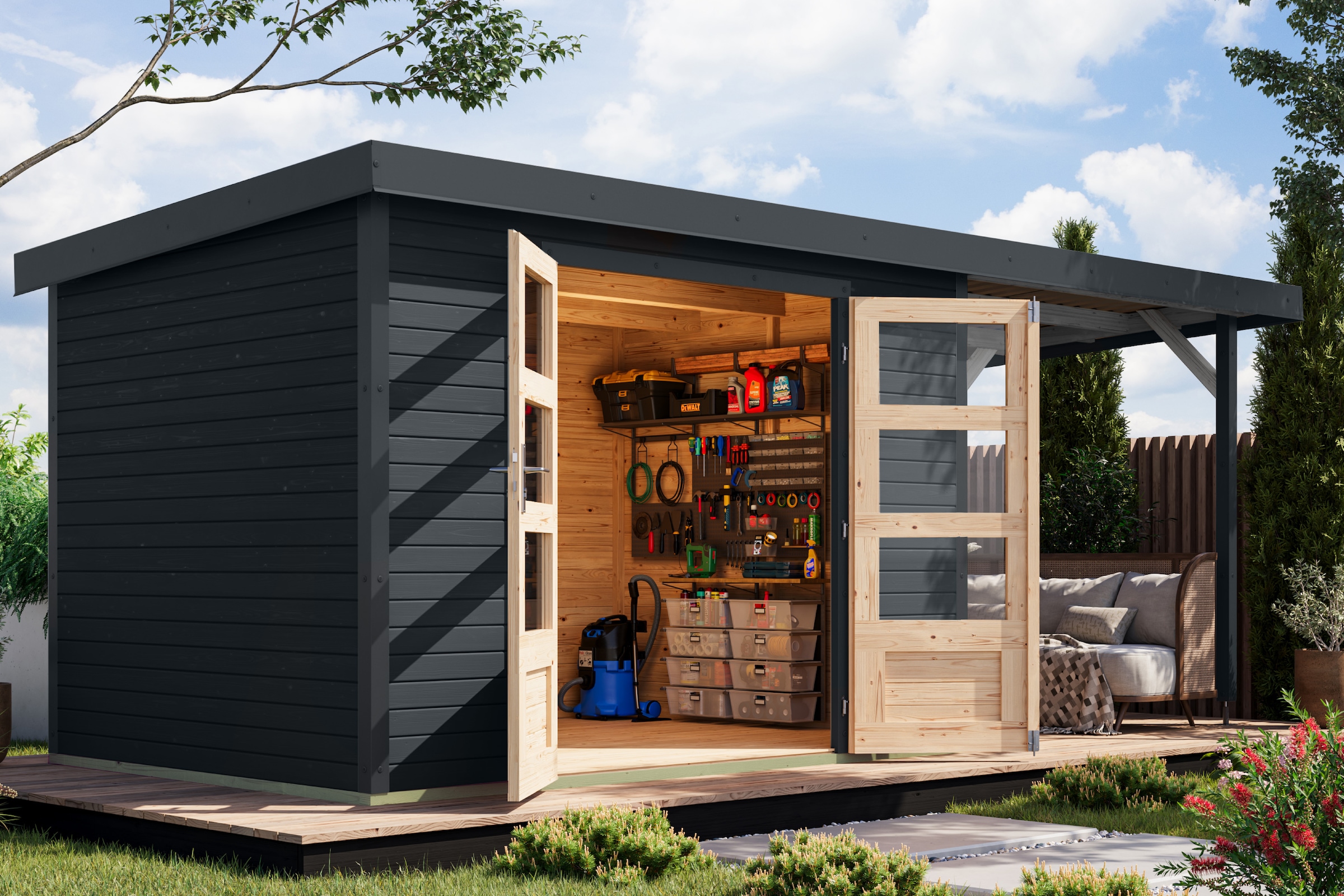 + Farben - Gartenhaus »"Remus" inkl Anbaudach 3m, Rück- und Seitenwand, mit 2 Fenstern«...KaribuAktueller Preis2.629,99 €