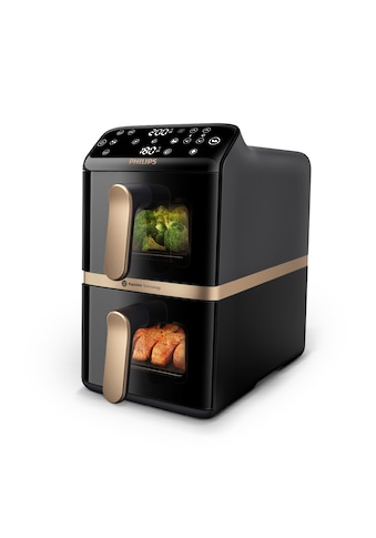 - Heißluftfritteuse »NA462/70 4000 Series Stacked Dual Basket und 10L Kapazität (5+5L)«...Philips- Platzsparend & clever: Zwei Körbe für zwei Gerichte gleichzeitig – bei 45 % weniger Stellfläche als herkömmliche Modelle.