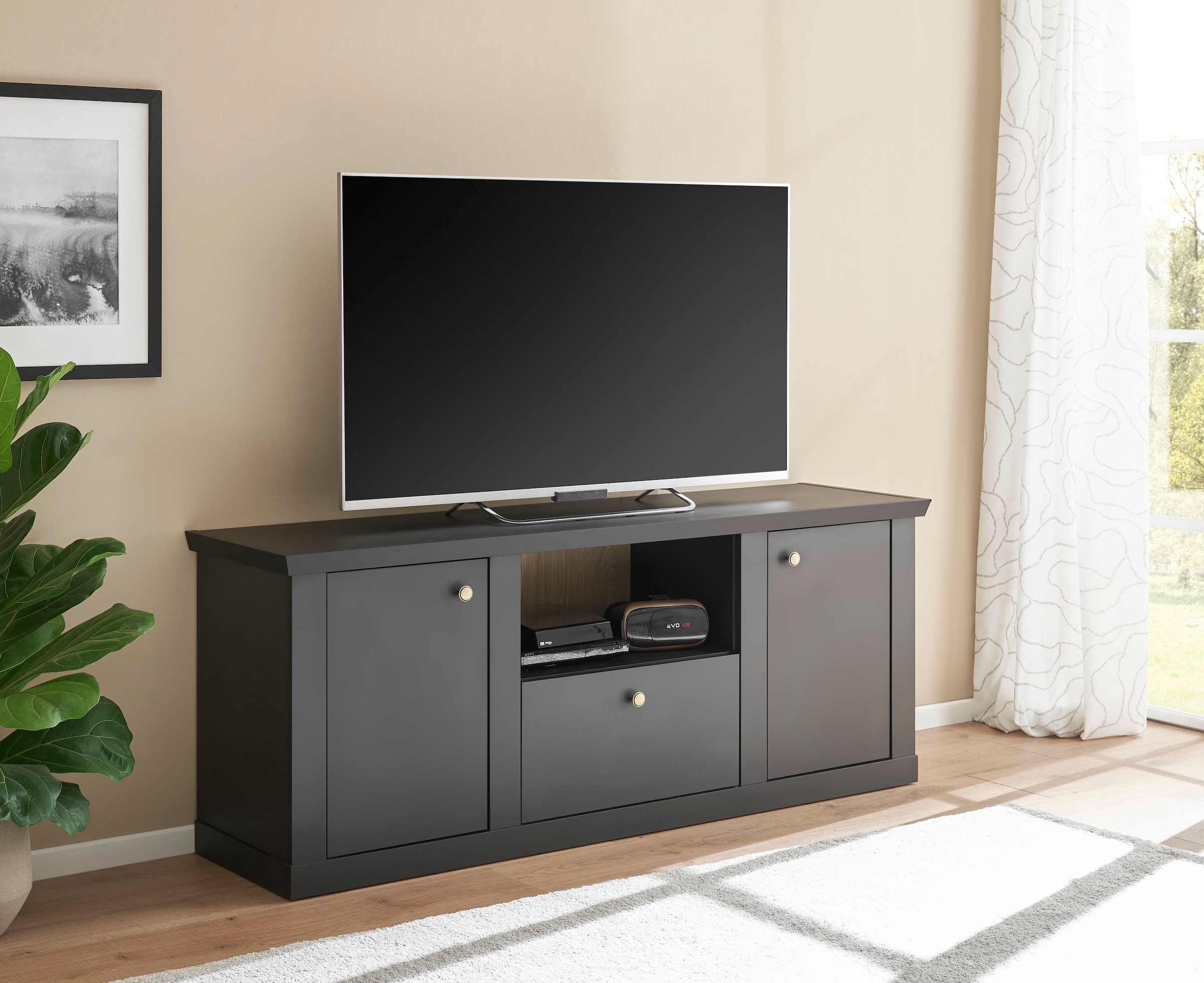 - Lowboard »modernes TV-Unterteil, Kommode in Eiche Evoke oder weiß« schwarze...Home affaireUrsprünglicher PreisUVP 369,99 €Rabatt- 100,00 €Aktueller Preis269,99 €