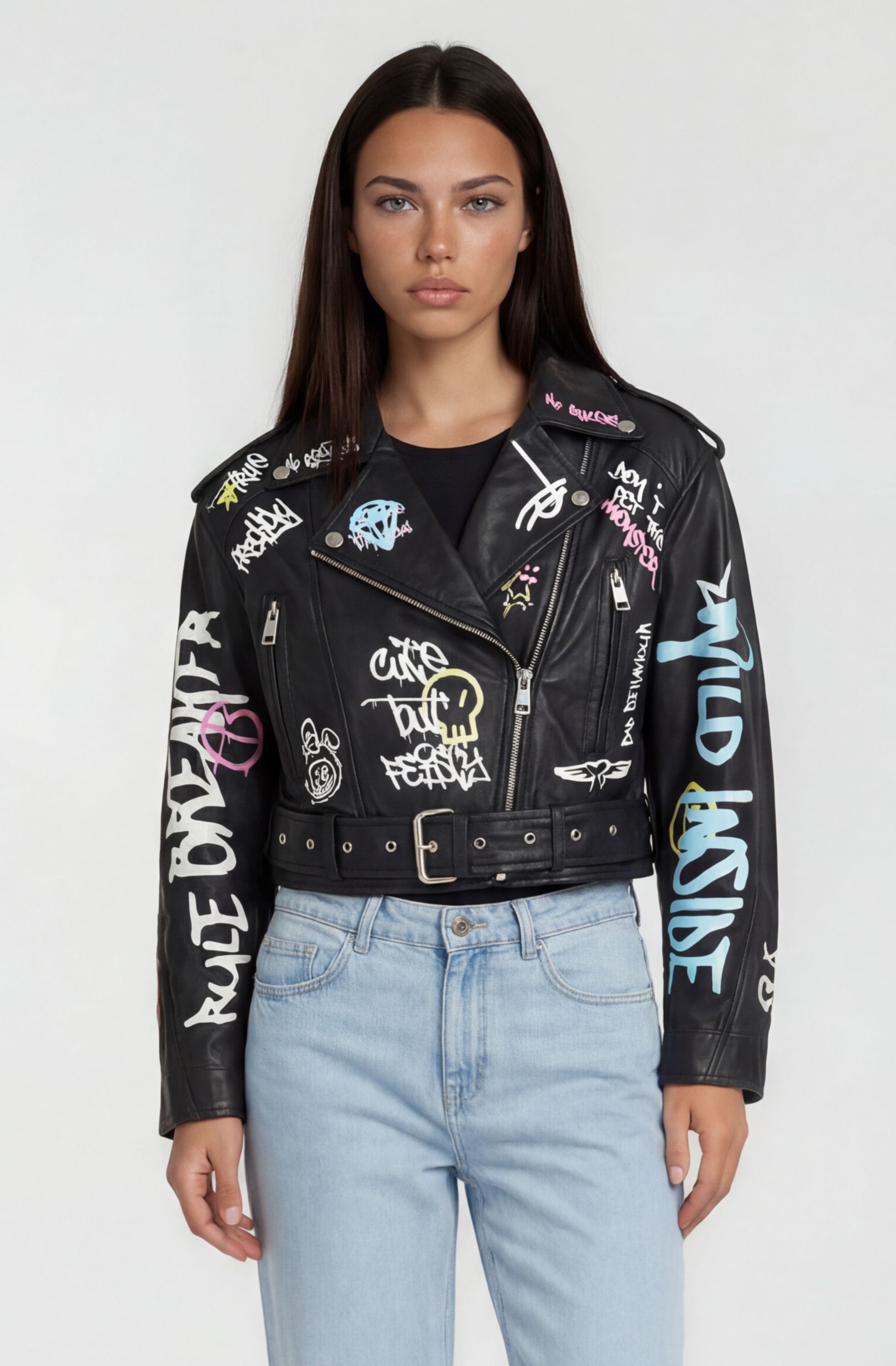 Neu - Lederjacke »Danis Auffälliger Graffiti Print« ohne KapuzetrueprodigyUrsprünglicher PreisUVP 349,99 €Rabatt- 70,00 €Aktueller Preis279,99 €