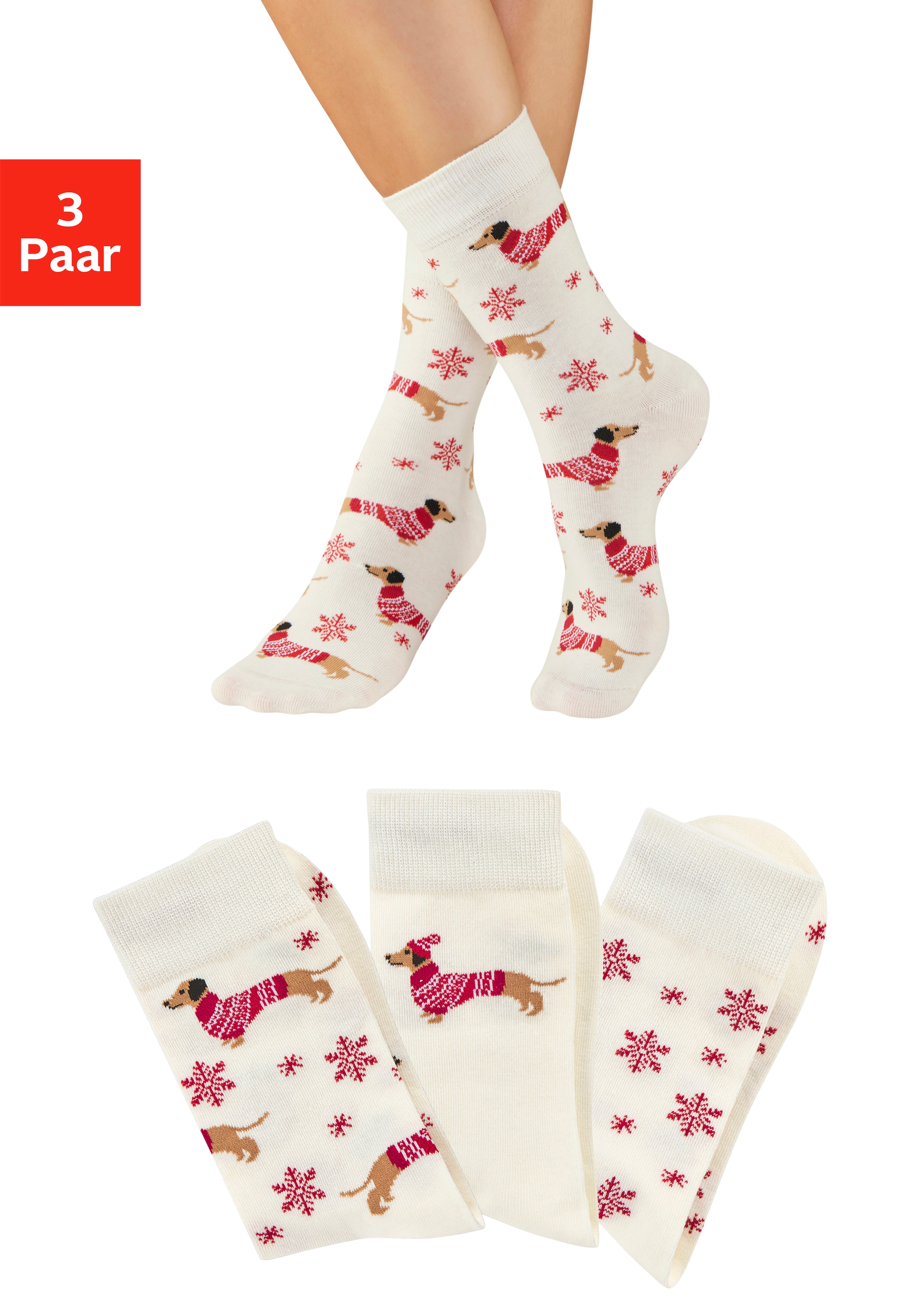 + Farben - Socken Packung, 3 Paar tlg. mit weihnachtlichem DackelmotivLASCANAAktueller Preis16,99 €